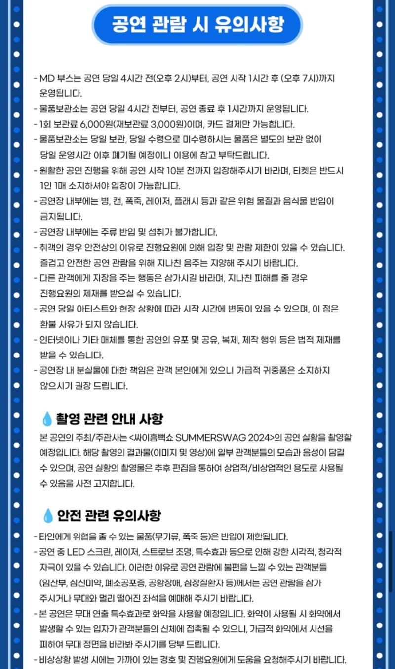 Ⅱ. 2024 싸이 흠뻑쇼 전국공연 공통사항