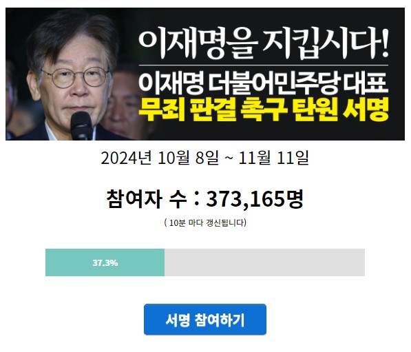 이재명 무죄 탄원서 탄원서명 37만 돌파 링크 주소 이재명무죄탄원.com