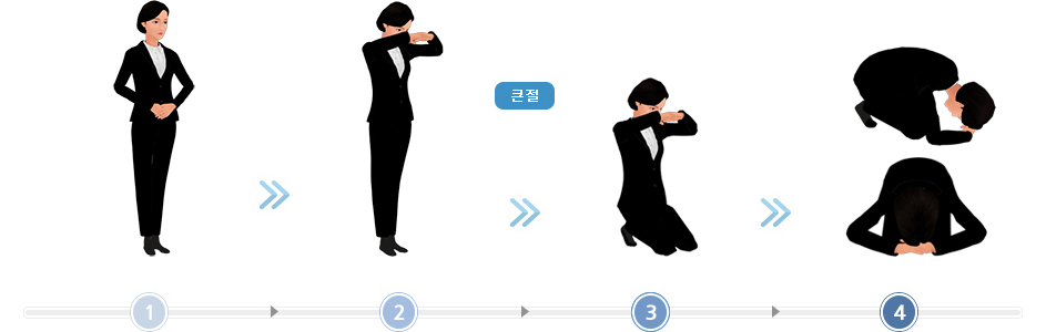 남자는 오른손을 왼손 위로 공수하고 그대로 바닥에 올려놓은 뒤, 왼쪽 무릎부터 내려 절하면 됩니다.