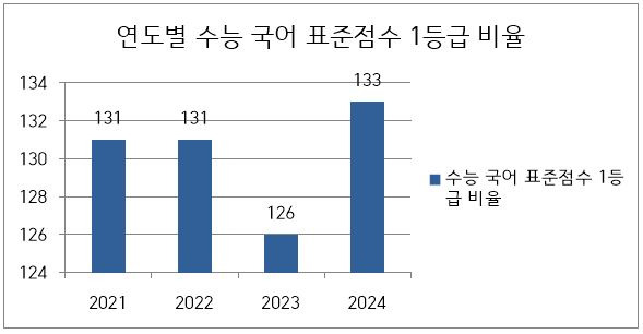 먼저 연도별 수능 국어 표준점수 1등급 비율 그래프를 보겠습니다.
