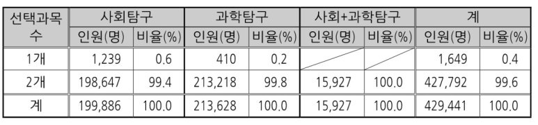 3. 사회.과학탐구 영역별 선택과목 수에 따른 응시자 현황