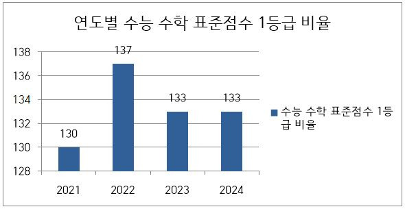 먼저 연도별 수능 수학 표준점수 1등급 비율 그래프입니다.