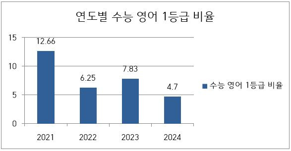 먼저 연도별 수능 영어 1등급 비율을 보겠습니다.
