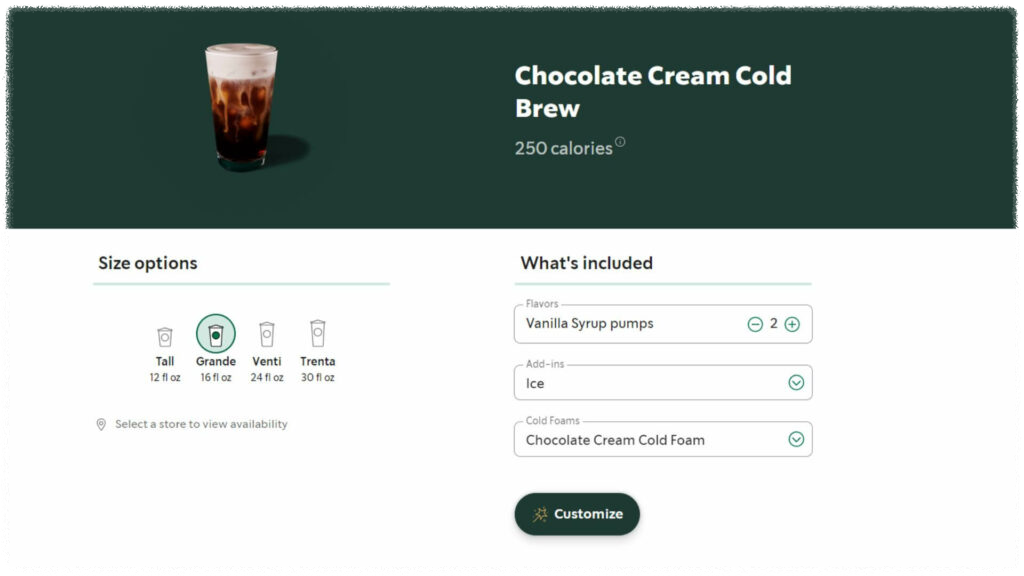 역시 초콜릿 크림을 엑스트라로 추가하면 더 깊은 초콜릿 맛을 느낄 수 있는데요. 처음에는 진한 초콜릿 크림의 달콤함을, 그 다음에 오는 쌉쌀한 콜드 브루의 깊은 맛을 느낄 수 있는 콜드 브루 커피 입니다.