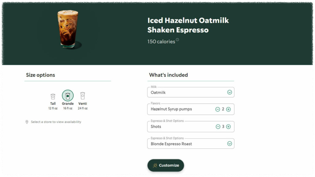 에스프레소 샷이 3잔이나 들어가 진한 맛이 특징이지만, 오트 밀크의 부드러움과 헤이즐넛의 고소함이 잘 어우러져 균형 잡힌 맛을 선사합니다.