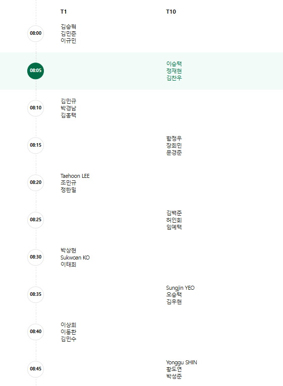 T26: Sukwoan KO, Taehoon LEE, 김홍택, 박상현, 정한밀, 조민규 (-2)