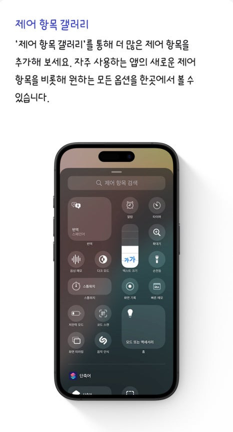 또, iPhone 16 전 모델 및 iPhone 15 Pro의 동작 버튼으로 새 제어 항목을 실행할 수도 있답니다.