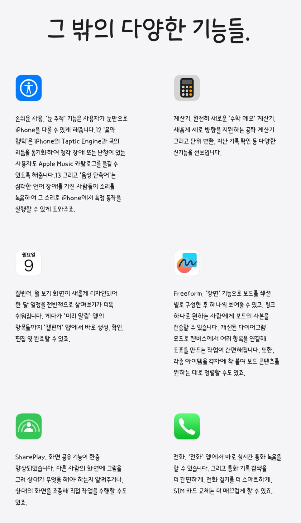 모두 애플 홈페이지에서 가져온 것들입니다!