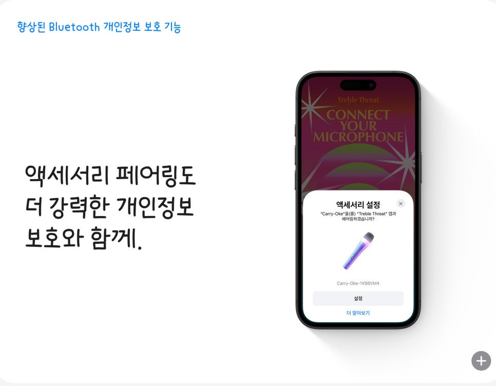 이제 앱 개발자는 사용자 근처에 있는 Bluetooth 기기에 관한 정보는 안전히 보호하면서도 액세서리를 직관적으로 페어링할 수 있는 새로운 연결 방식을 제공할 수 있게 됩니다.
