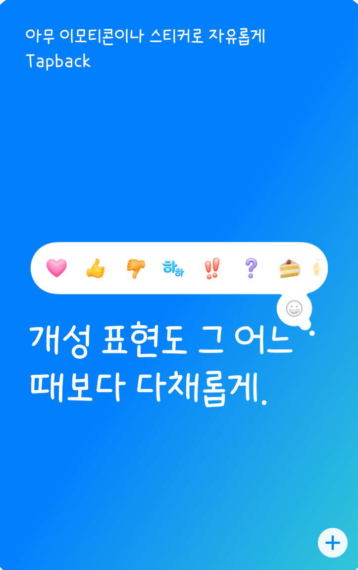 당신과 친구가 가장 애용하는 이모티콘이나 스티커도 스와이프 한 번으로 재빠르게 띄울 수 있습니다.