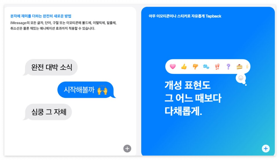 이제 아무 이모티콘이나 스티커로도 Tapback을 보낼 수 있습니다.