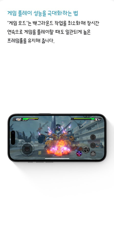 게임 모드를 설정하면 무선 컨트롤러의 Bluetooth 폴링률이 두 배가 되어 게임 내 반응성이 대폭 향상됩니다.