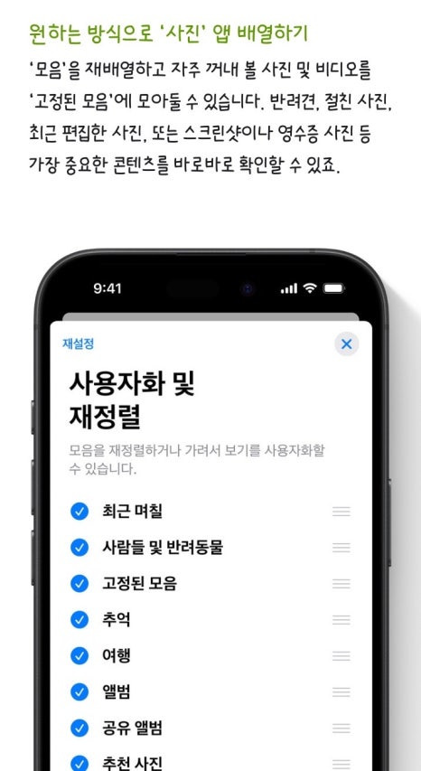 새로워진 ‘사진’ 앱은 보관함을 깔끔하게 정리된 상태로 유지해 주고,