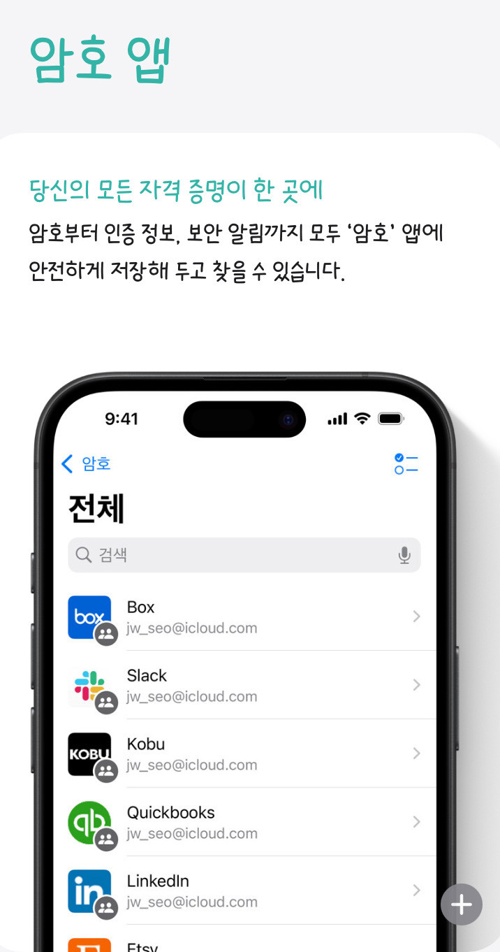‘암호’ 앱은 당신의 모든 자격 증명을 안전하게 저장해 줍니다.
