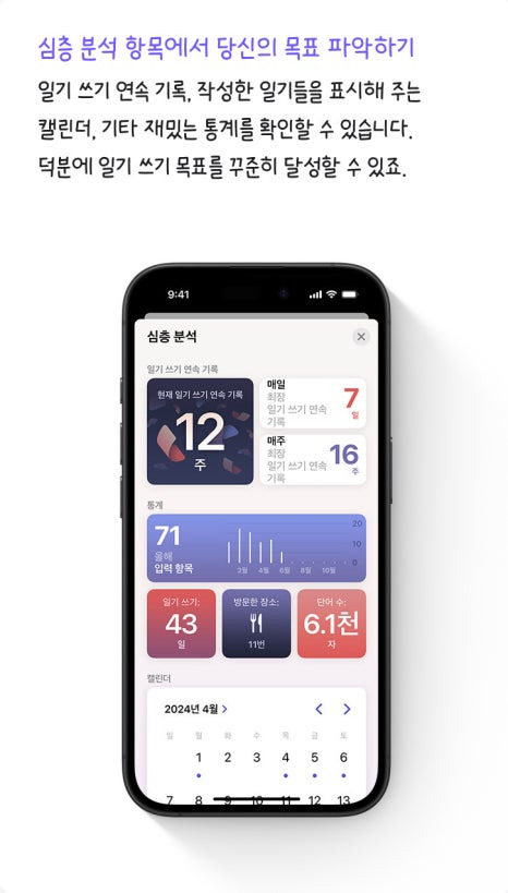 일기 쓰기 제안을 하루 내내 바꿔 가며 띄워주는 위젯이나 현재 연속 기록을 보여주는 위젯을